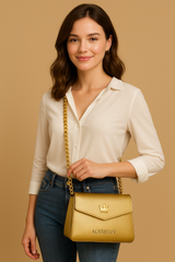 Designed for women who lead, this bag features a polished gold chain strap, magnetic flap closure, and a velvet-touch interior with a sleek zippered pocket for your night-out essentials. Whether it’s a cocktail evening, wedding, or special occasion, this bag turns every look into a moment.