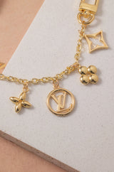 This Ornate Golden Grace bag charm is meticulously crafted from gold-plated silver alloy. It features a lobster claw closure for secure fastening. This bag charm offers a versatile and stylish option for any outfit.