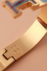 This Pink Royal Maze bracelet is crafted from gold-plated silver alloy and features a toggle clasp for secure fastening and comfort. Its elegant design makes it a versatile piece of jewelry.