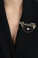 Introducing our Signature Chic Brooch — a beautifully crafted piece featuring an elegant chained design that brings a timeless, iconic touch to any look. Perfect for adding sophistication and grace to your outfit, it is secured with a classic dating brooch closure for effortless wear.