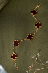 This bracelet features a bold red petal design with 18k gold plating and a secure lobster claw closure clasp. Add a touch of elegance and sophistication to your outfit with this bracelet. Perfect for any occasion.