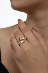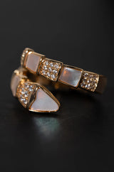 This radiant snake ring features a stunning design adorned with faux white stones and cubic zirconia, crafted from gold plated silver alloy.