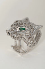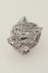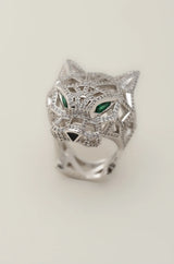 This whimsical cat ring features a charming green cat eye, crafted from durable silver alloy for lasting elegance.