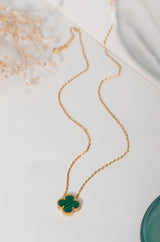 This exquisite necklace features a charming clover pendant, crafted from gold plated silver alloy. The lobster claw closure ensures secure wear, making it perfect for any occasion.