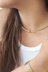 Introducing the Nail Choker 2.0 Gold, the ultimate accessory to elevate your style. Crafted with premium stainless steel and 18kt gold plating, this unique nail-inspired choker exudes celebrity glamour. Durable and tarnish-resistant, it's a versatile and convenient piece for any occasion. Designed for the sophisticated and timeless woman.