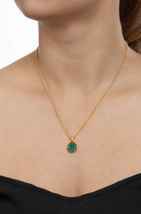 Elevate your style with this round allure neckchain. Crafted from silver alloy, it features a stunning green faux stone and a secure lobster claw closure for easy wear.