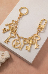 This Ornate Golden Grace bag charm is meticulously crafted from gold-plated silver alloy. It features a lobster claw closure for secure fastening. This bag charm offers a versatile and stylish option for any outfit.
